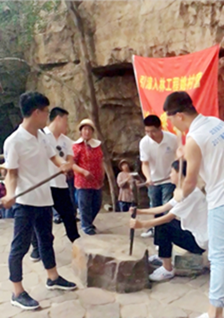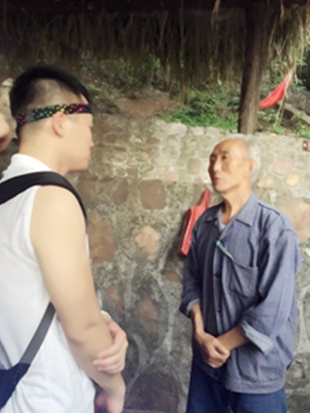 在青年洞同學們有幸找到當初參與修建紅旗渠的老人盧雷云,盧爺爺熱情地為大家講解了當初的故事。他家住林州市盤陽村,老人每每提及修建紅旗渠的故事,都不禁為之動容。學生:您有哪些記憶深刻的紅旗渠故事嗎?盧老:我們這兒歷代缺水吃,當時剛剛解放,在毛主席和黨的號召下,林縣的男女老少都參與到了紅旗渠的建設當中,那時沒有技術也沒有錢,五六百斤的大石頭都是人們用肩膀扛出來的,缺火藥自己造,缺石灰自己造,真的很艱苦。學生:你們當時修建紅旗渠的時候有什么報酬嗎?盧老:毛主席當年帶領我們白手起家,打日本也要錢,打蔣介石也要錢,還借了蘇聯好多外債,當時啥都沒有,我們連飯都吃不飽還求什么報酬,當時人們就一個念想就是建成這條水渠,讓子孫們有水吃。學生:現在紅旗渠影響力很大,每天來的人也很多,你們會不會為紅旗渠這個水利奇跡而自豪?盧老:自豪是有的,紅旗渠通了,水來了,莊稼就長得好了,人們的生活水平有了很大提高,但是,一提到紅旗渠我首先感到的是心疼,因為當時條件的艱苦程度是你們無法想象的。