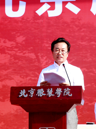 之后,商務部國際商務官員研修學院副院長劉明哲講話,他祝賀新生來到北服這個美麗時尚的學校,期待新生們把學校推向更高更廣的平臺,同時,也希望新生們借助北校區這個國際化平臺將自己打造成國際化人才。