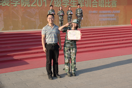 最佳表演獎在場同學(xué)紛紛表示被這洪亮的歌聲、響亮的口號以及整齊協(xié)調(diào)的演出隊伍所震撼,最終,二營一隊獲得本次軍訓(xùn)合唱比賽一等獎,材料科學(xué)與工程學(xué)院輔導(dǎo)員李江老師為獲獎連隊代表頒發(fā)榮譽證書。