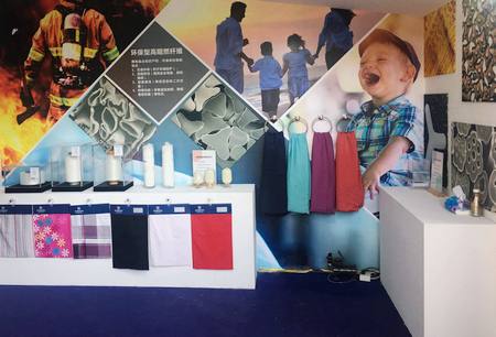 “智能材料”展區展示針對空氣污染防護的過濾纖維及自主研發的空氣過濾裝置、日常防護用口罩,新型電致變色窗,柔性變色服裝和紡織品;“功能纖維和綠色纖維”展區包括擁有自主知識產權的環保型高阻燃纖維,靜電紡納米纖維膜、面料、防水透濕服裝及性能展示,廢舊紡織品循環利用技術和產品展示;“染整工程”展區中,數碼印花無需制版,設計樣稿可在計算機上任意修改。現場可轉印圖案,即時體驗和互動;“智能生活”展區展品為功能機器人、炫彩視覺、可穿戴功能服裝、創意生活家居作品等;“虛擬服裝”展區將體感交互技術應用于試衣系統,使人感受到計算機交互技術發展帶來的便利。