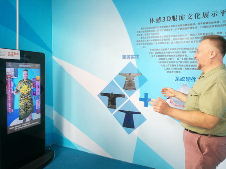 其中,在所有產品展示區中,體感3D服飾文化展示平臺最受歡迎。3D虛擬試衣系統除提供服裝的試穿功能外,還借助文字、圖片等形式全面介紹不同服裝所對應的文化背景,普及服裝文化常識。不同于目前商業模式中逐步推廣的3D虛擬試衣系統,本項目更注重服飾文化的傳播,因此包括國粹箐華中國歷代服飾、少數民族服飾、奧運主題服飾在內的多個主題將都給使用者帶來全新的體驗。
