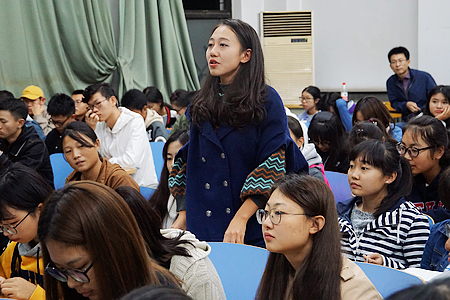 在將近兩個小時的講座中,韓院士結合大一新生的特點,從化學的重要性作為切入點逐步展開報告,緊密結合實際介紹了綠色化學的理念、發展歷程以及綠色化學與可持續發展的關系。韓院士的報告語言生動,內容精彩,開闊了學生的思路和視野。報告結束后,同學們就專業、學科和未來發展等問題與韓院士進行熱烈討論,取得了很好的效果。