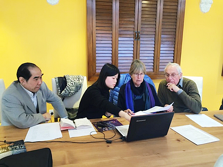 劉瑞璞教授和陳果博士與Gina夫婦討論書稿