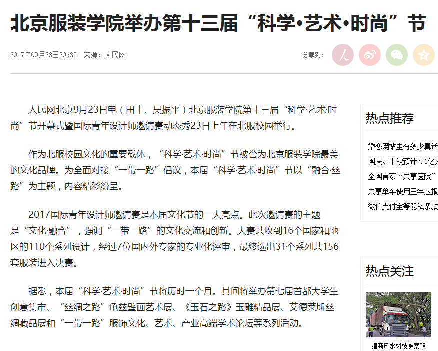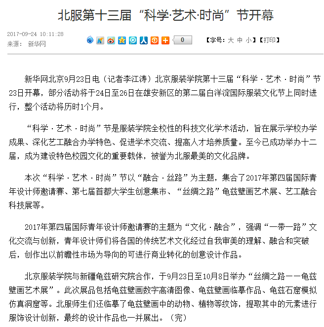 - 【置頂】多家媒體報道北京服裝學院第十三屆"科學·藝術·時尚”節