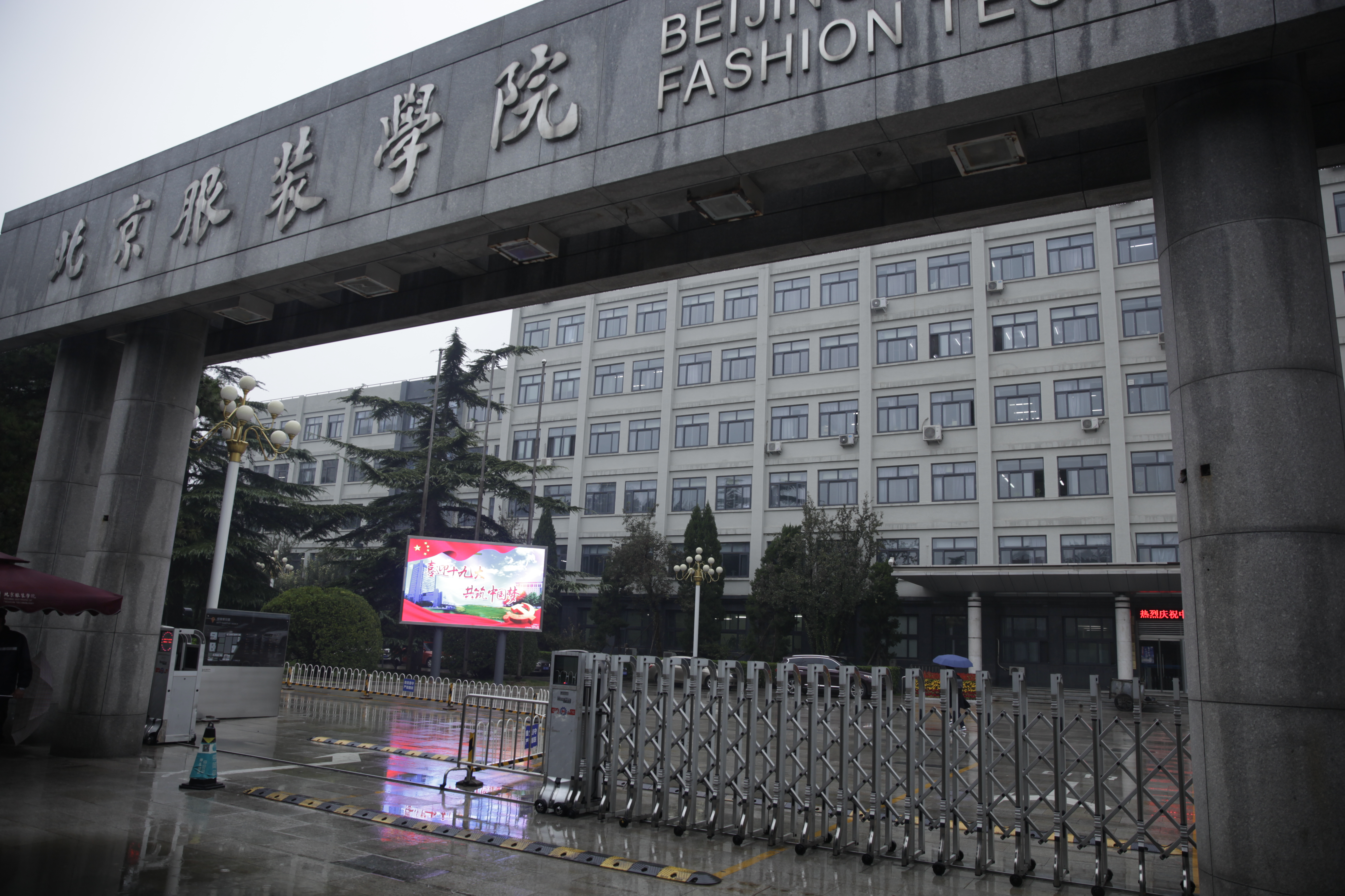 南門大屏幕顯示“喜迎十九大·共筑中國夢”字樣