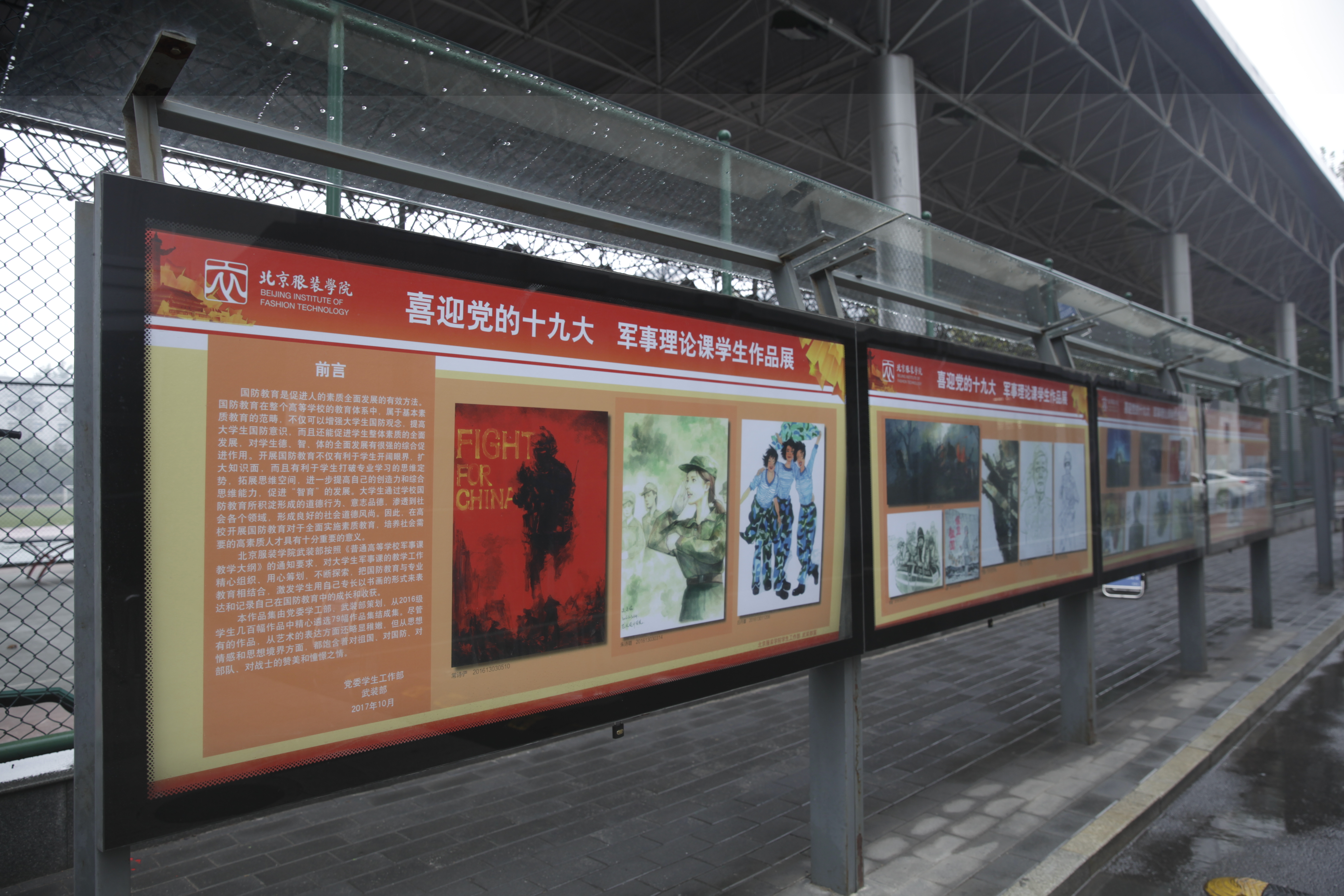 宣傳欄展出“喜迎黨的十九大 軍事理論課學生作品展”