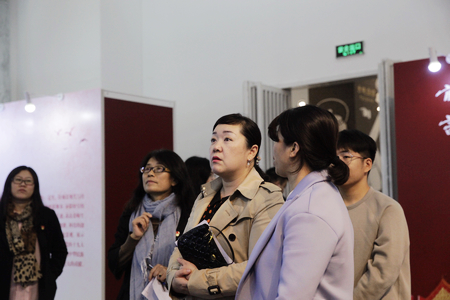 展覽期間,北京信息科技大學、北京財貿職業(yè)技術學院、中國音樂學院、北京城市學院、北京青年政治學院、北京農學院等兄弟院校師生400余人先后來我校觀展。之后又參觀了我校民族服飾博物館、土城空間等地。