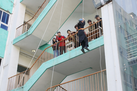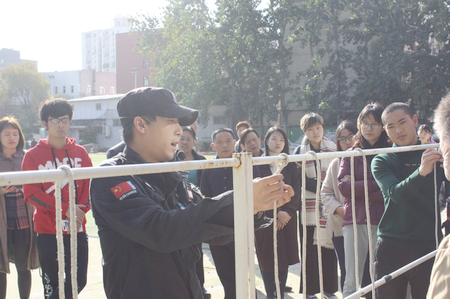 活動一直持續到晚7點,天色已暗,雖然沒有較好的燈光條件,但是學員們抱著高漲的學習熱情,認真的學習態度,依舊堅持把每道技能培訓科目一一學到、學會。不論是需要膽量和技巧的緩降逃生演練,還是考驗細致與耐心的結繩實訓,無不在教官們的悉心教導下,在學員們互幫互助的學習氛圍中一一攻克。
