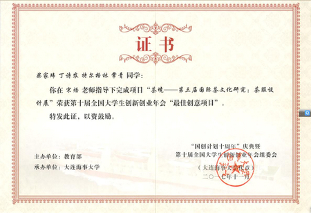 本屆年會共收到全國各高校推薦的1066個成果,經過評審,全國共有236所高校403個成果進入本次年會,其中,學術論文166篇、創(chuàng)新創(chuàng)業(yè)展示項目188項、創(chuàng)業(yè)推介項目49項。我校共有3項大學生創(chuàng)新創(chuàng)業(yè)訓練計劃項目作品入選,包括學術論文1篇、展示項目2項。入選作品數量居北京市市屬高校前列,其中我校宋煬老師的《茶境》項目在本次年會獲得“最佳創(chuàng)意項目”殊榮。