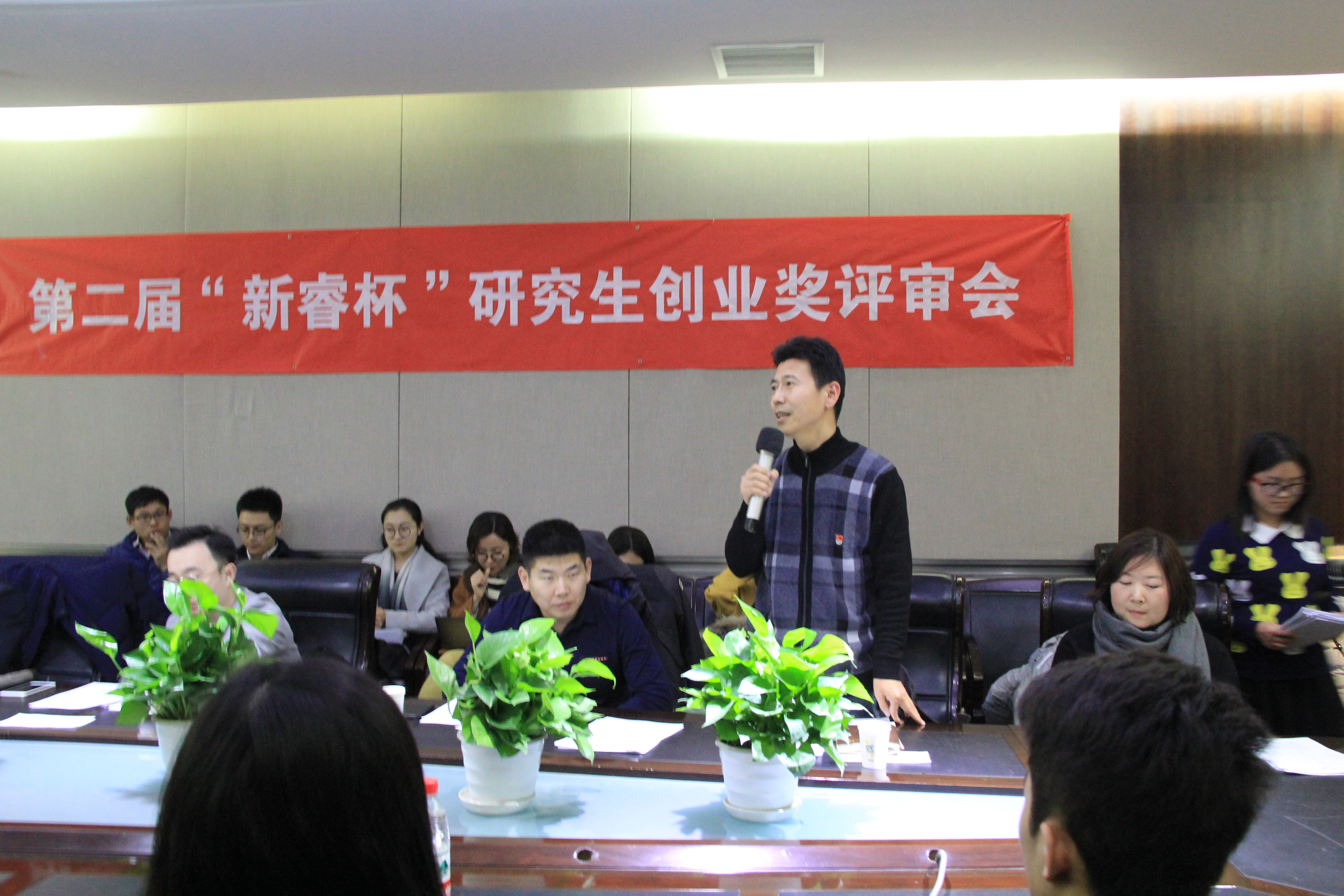 11月29日下午,我校第二屆“新睿杯”研究生創(chuàng)業(yè)獎(jiǎng)評(píng)審會(huì)在綜合樓101會(huì)議室舉行。研究生創(chuàng)業(yè)獎(jiǎng)的設(shè)立旨在進(jìn)一步學(xué)習(xí)貫徹《國(guó)務(wù)院辦公廳關(guān)于深化高等學(xué)校創(chuàng)新創(chuàng)業(yè)教育改革的實(shí)施意見》文件精神,激勵(lì)在校研究生積極開展創(chuàng)業(yè)實(shí)踐活動(dòng),以促進(jìn)科研成果的轉(zhuǎn)化,進(jìn)一步推動(dòng)我校研究生創(chuàng)新創(chuàng)業(yè)教育工作。本次創(chuàng)業(yè)獎(jiǎng)評(píng)審分為“成長(zhǎng)組”和“創(chuàng)意組”兩個(gè)組別,共有17個(gè)創(chuàng)業(yè)項(xiàng)目進(jìn)入評(píng)審環(huán)節(jié)。