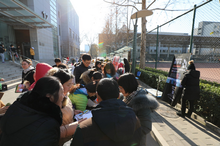 室外北風冷峭,但展位前人頭攢動,熱鬧非凡。師生們或駐足答題,或傾聽工作人員的項目介紹。“沒想到學校還開設了如此豐富的培訓課程”,一位參加活動的老師說道。此次6個二級學院展示的40余個培訓項目,涵蓋了知識普及類、技能提升類、高端定制類等多個層次,這既是學習貫徹十九大精神的生動實踐,又體現了學校向社會輻射教育資源、建設國際一流時尚高校的決心。