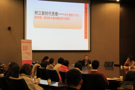 12月7日下午,由研究生院黨委主辦,研究生院團總支、研究生會承辦的第九期“教授茶座—引領人生”活動在7號樓圓桌會議室舉行。此次活動由我校黨史研究專家閆東副教授為大家帶來關于學習十九大精神的學習體會。本次茶座由團總支書記李燕主持,研究生院研究生黨員、發展對象及積極分子八十余人參加此次活動。