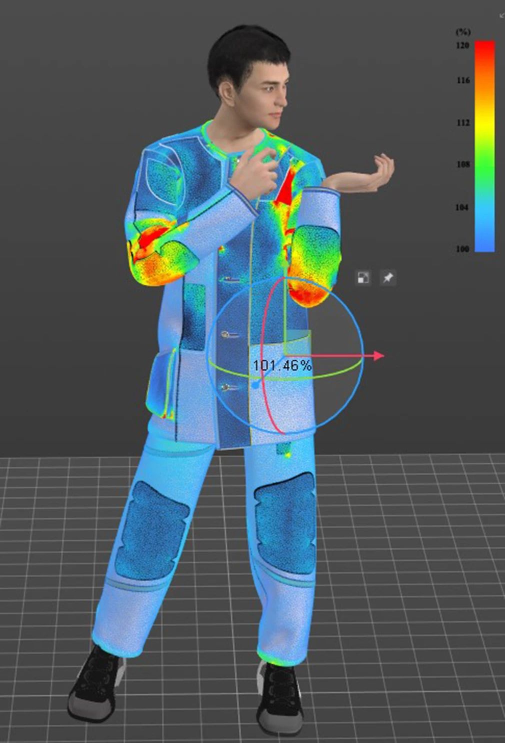 服裝項(xiàng)目組使用專(zhuān)業(yè)設(shè)備對(duì)射擊運(yùn)動(dòng)特征屬性以及運(yùn)動(dòng)員在射擊比賽中的動(dòng)作姿態(tài)、熱濕表現(xiàn)、壓力感等生理、物理特征數(shù)據(jù)進(jìn)行測(cè)試和收集;針對(duì)運(yùn)動(dòng)員個(gè)人舒適度喜好、人體體型及動(dòng)作姿態(tài)特征等信息進(jìn)行全面細(xì)致的整理,并以此為基礎(chǔ)定制運(yùn)動(dòng)員“三維+運(yùn)動(dòng)”動(dòng)態(tài)版型。在裝備整體視覺(jué)方面,運(yùn)用祥云、山紋、海水江崖等中國(guó)傳統(tǒng)元素,彰顯文化自信;在穿著評(píng)價(jià)方面,持續(xù)跟蹤運(yùn)動(dòng)員定制比賽服的穿著訓(xùn)練效果,在試穿評(píng)價(jià)基礎(chǔ)上調(diào)整完善“皮服”材料、版型和工藝方案,最終用于正式比賽服裝。除此之外,項(xiàng)目組還開(kāi)發(fā)并制作了內(nèi)層機(jī)能服、中層訓(xùn)練衣。