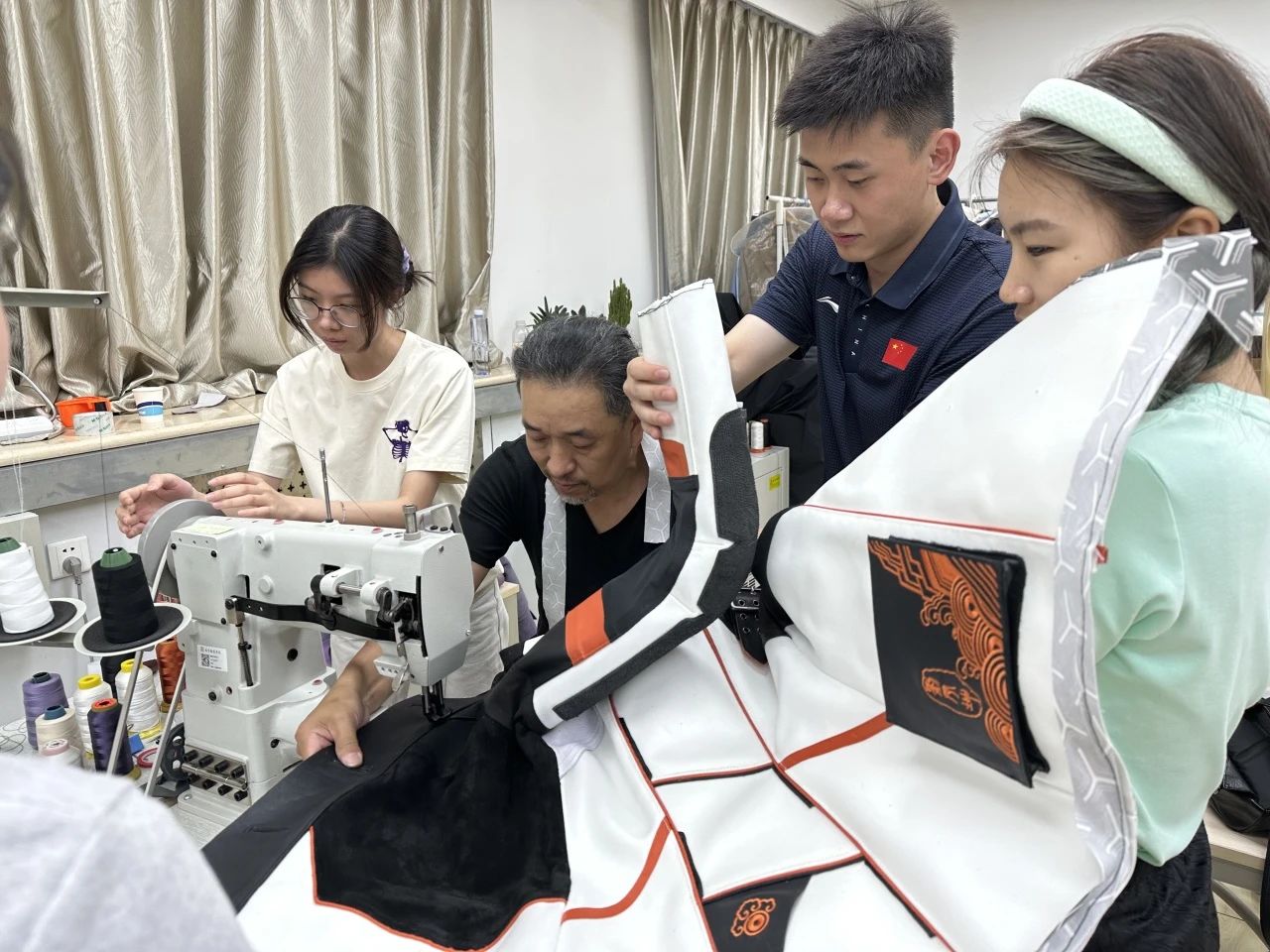 步槍射擊運(yùn)動(dòng)員穿著的比賽服稱(chēng)為“皮服”,由特制的帆布和牛皮等材料制成。此前,中國(guó)國(guó)家射擊隊(duì)一直使用國(guó)外比賽服,為解決這一“卡脖子”問(wèn)題,北京服裝學(xué)院自2022年就組建了包括材料、服裝、服飾的跨學(xué)科研發(fā)團(tuán)隊(duì),開(kāi)始了包括射擊比賽服、機(jī)能內(nèi)衣、射擊鞋等比賽裝備的深入研究與開(kāi)發(fā)工作,其中由服裝藝術(shù)與工程學(xué)院教師組成的服裝項(xiàng)目組,依托金猴集團(tuán)制造實(shí)力,主攻皮服及機(jī)能服的關(guān)鍵技術(shù),獲得多家企業(yè)大力支持,多名研究生、本科生參與研究工作。