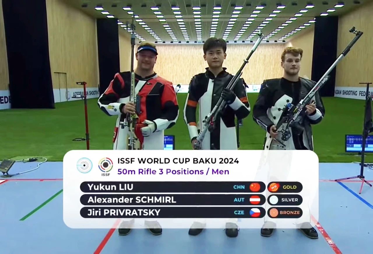 2024年5月,劉宇坤在射擊世界杯阿塞拜疆巴庫(kù)站問(wèn)鼎
