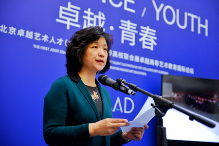 北京市教育委員會(huì)高教處調(diào)研員榮燕寧首先代表指導(dǎo)單位致辭,她強(qiáng)調(diào)了北京卓越藝術(shù)人才培養(yǎng)高校聯(lián)盟及其系列活動(dòng)的重要意義,北京卓越藝術(shù)人才培養(yǎng)高校聯(lián)盟融合北京高校藝術(shù)教育資源優(yōu)勢,意在打造藝術(shù)教育的高端平臺(tái)。它突破了一時(shí)一地、一校一師的局限,開拓了校際乃至國際藝術(shù)資源的交流與互動(dòng)。高校聯(lián)盟的成立有利于資源整合與合作共贏,為首都藝術(shù)高校人才教育與培養(yǎng)提供了新的交流平臺(tái)與展示契機(jī)。