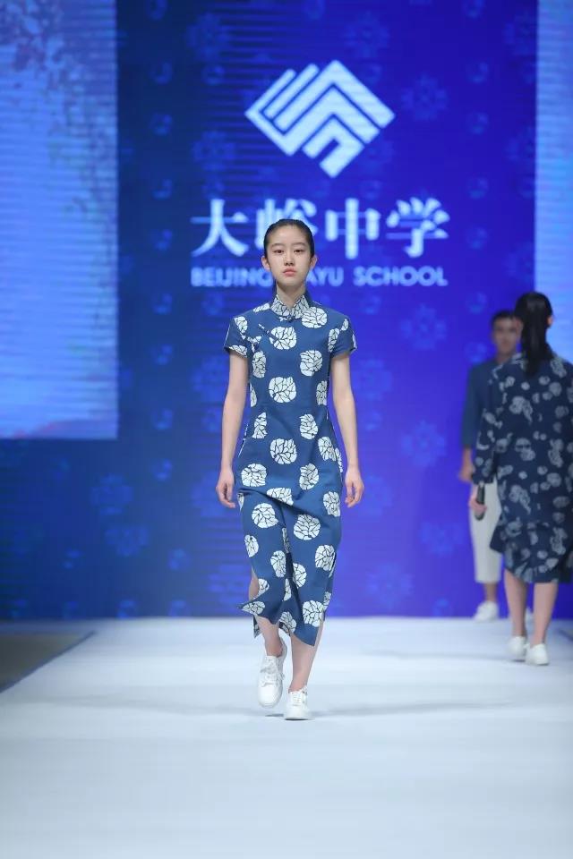 在園區(qū)銀色大廳舉辦的“未藍” 藍印主題服裝靜態(tài)展展示了大峪中學(xué)學(xué)生圖案設(shè)計作品及制作過程。在園區(qū)1號秀場舉辦的“未藍” 藍印主題服裝動態(tài)秀分為青青子衿(校服)、粲粲藍服(立裁)、楚楚青韻(套服)、皎皎如藍(發(fā)光衣)四個系列,展示了學(xué)生設(shè)計師的設(shè)計作品和學(xué)生模特的風(fēng)采。