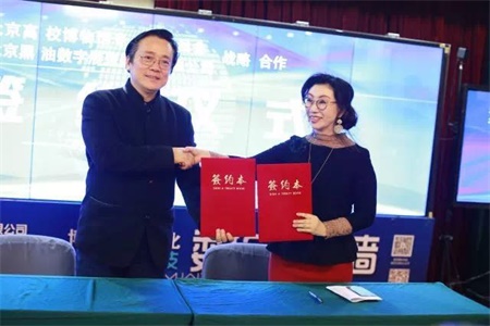 活動中,北京高校博物館專委會與北京黑油數字展覽股份有限公司簽訂了行業與科技企業戰略合作協議,并為企業頒發“文博科研與教學實踐基地”牌匾。雙方的聯手全面合作,必將對高校博物館智能新科技發展起到巨大的推動。