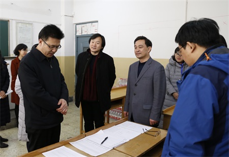 凌晨6:30,在校本部的考務工作人員就已到崗進行準備,上午8:30考試正式開始,各個考場秩序井然,考試有條不紊進行。校領導馬勝杰、倪賽力、賈榮林及相關部門負責人到考場巡視、指導工作。黨委副書記艾麗帶隊巡視浙江省考點,保障考試順利完成。