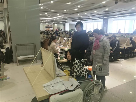 為了保證考試的順利進行,招生工作處聯合校團委對考生家長開放禮堂作為家長休息區,并播放我校宣傳片便于家長了解學校概況;聯系后勤為考生和家長準備充足的盒飯;成立研究生招生志愿團,提前培訓進行現場道路指引;組織醫療小組,為生病的考生及家長提供醫療服務;另外,學校還單獨設立愛心考場。有3名懷揣藝術夢想的考生,因身體不適,不便爬樓到原定考場考試,學校將他們的考試地點調整到有電梯的食堂考場。學校各種貼心的人性化服務為考生和家長在寒冷的冬天送上了親人般的溫暖,受到了家長的高度贊揚。