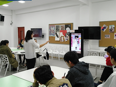 《服裝數(shù)字科技》這門公選課通過介紹服裝計(jì)算機(jī)輔助設(shè)計(jì)、虛擬服裝、服裝人體數(shù)字化、數(shù)字化服裝定制、電子紡織品、服裝3D打印、服飾文化的數(shù)字化傳播等把數(shù)字科技與服裝緊密結(jié)合。課堂上主講教師姜延和馬凱老師熟練操作各類新型教育產(chǎn)品,充分發(fā)揮出智慧教室科技、創(chuàng)新、開放、互動(dòng)的特色。