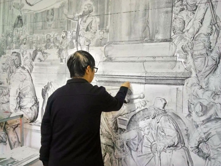 我校特聘研究生導師,國家一級美術師,軍博創作室周武發老師