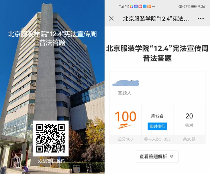 開展北服“12.4”線上普法答題活動