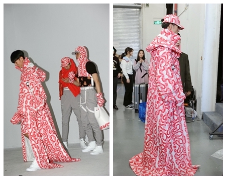 男裝專業(yè)優(yōu)秀畢業(yè)生馮章翀選取九龍貧民窟人們的生活為靈感進行設(shè)計延伸。在他看來,九龍寨城的人生活雖然貧苦,但是他們向往生活的美好,那是黑暗中的人性之光。