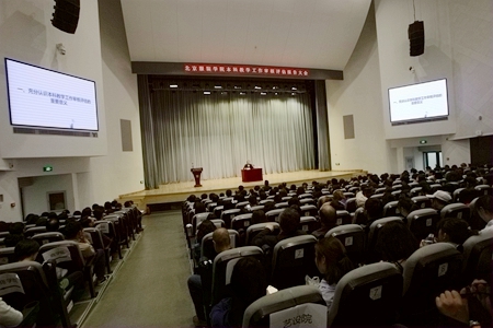 首先,北京市教育工委副書記,北京市政府教育督導室主任唐立軍做了題為《堅持內涵發展,扎實做好本科教育審核評估工作》的報告。報告分為三個部分,第一部分唐主任從教育部、北京市政府教育督導室的高度,全面闡述了內涵發展,提高人才培養質量的重要性,強調審核評估是推動和強化人才培養中心地位,落實立德樹人的重要舉措。第二部分唐立軍講到審核評估北京方案與教育部方案的不同之處,及與之相對應的評估審核要點分析。北京特色的審核評估方案著力引導市屬高校人才培養中心地位;引導市屬高校科學定位,特色辦學,發揮優勢;引導高校強化質量保障體系建設,不斷提升本科教學質量。細化為六個方面:一是突出高等教育立德樹人的根本任務;二是突出人才培養的中心地位;三是突出以學習者為中心的人才培養模式要求;四是突出教師隊伍建設的重要性;五是突出服務區域經濟和社會發展的導向;六是突出本科教學質量保障體系的閉環管理。第三部分,唐立軍談到已完成審核評估的高校普遍存在專業發展不均衡、質量保障體系尚需完善等共性問題,勉勵大家以審核評估為契機,堅持以評促建,高標準、高水平實施審核評估工作,推動高校內涵發展。