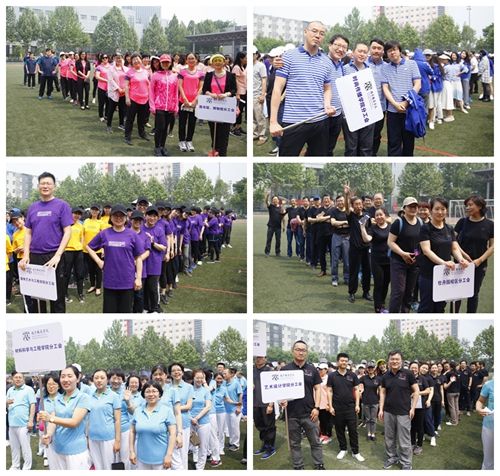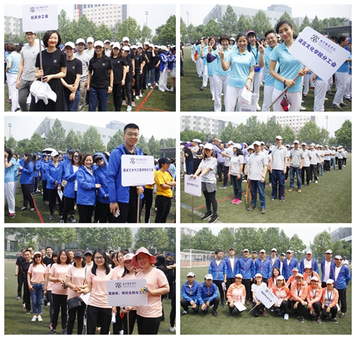 伴隨著運(yùn)動(dòng)員進(jìn)行曲,后勤基建管理處分工會(huì)、機(jī)關(guān)分工會(huì)、材料科學(xué)與工程學(xué)院分工會(huì)等代表隊(duì)率先在指定位置列隊(duì)。全校18個(gè)分工會(huì)代表隊(duì)均統(tǒng)一著裝,展現(xiàn)了各自特色和良好的精神風(fēng)貌。