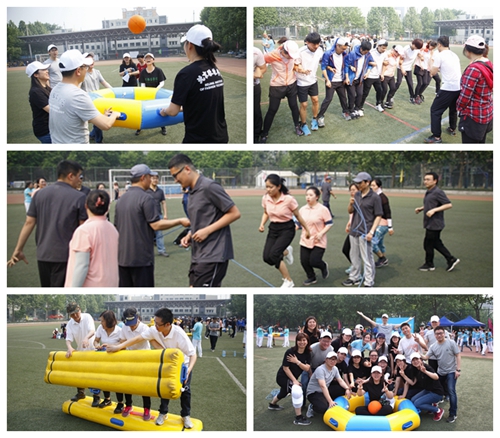 本屆運(yùn)動(dòng)會(huì)以“趣味性為主,競(jìng)技性為輔”,共設(shè)五項(xiàng)集體項(xiàng)目:袋鼠跳接力、集體跳繩、眾星捧月、同舟共濟(jì)、蛟龍出海和八項(xiàng)個(gè)人項(xiàng)目:急行跳遠(yuǎn)、摸石頭過河、點(diǎn)球大戰(zhàn)、兩人三足、一分鐘投籃、托球繞標(biāo)、心心相印、趕豬入籠。每一個(gè)項(xiàng)目都吸引了教職員工廣泛參與,激發(fā)了老師們的運(yùn)動(dòng)熱情,緩解了大家的工作壓力。運(yùn)動(dòng)會(huì)充滿趣味性、挑戰(zhàn)性,教師們發(fā)揚(yáng)團(tuán)結(jié)、友誼、參與、和諧的精神,精彩紛呈的競(jìng)技場(chǎng)面不斷呈現(xiàn)。每位教師臉上都洋溢著燦爛的笑容,特別是集體項(xiàng)目的比拼,成為賽場(chǎng)上一道靚麗的風(fēng)景,將運(yùn)動(dòng)會(huì)推向了高潮,后勤基建管理處分工會(huì)、北校區(qū)分工、材料科學(xué)與工程學(xué)院分工會(huì)、語言文化學(xué)院分工會(huì)、圖書館分工會(huì)、商學(xué)院分工會(huì)、美術(shù)學(xué)院分工會(huì)、信息中心分工會(huì)、繼續(xù)教育學(xué)院分工會(huì)等分工會(huì)主要領(lǐng)導(dǎo)帶頭參與其中,助力奪冠,極大地激發(fā)了教職員工動(dòng)力與激情,加油、歡呼聲此起彼伏。