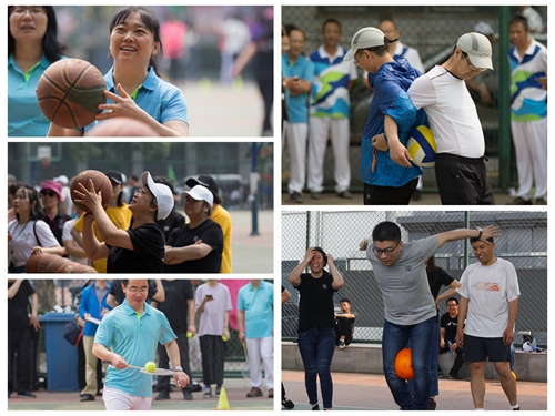 教師們?cè)谫悎?chǎng)上發(fā)揚(yáng)團(tuán)結(jié)、友誼、參與、和諧的精神
