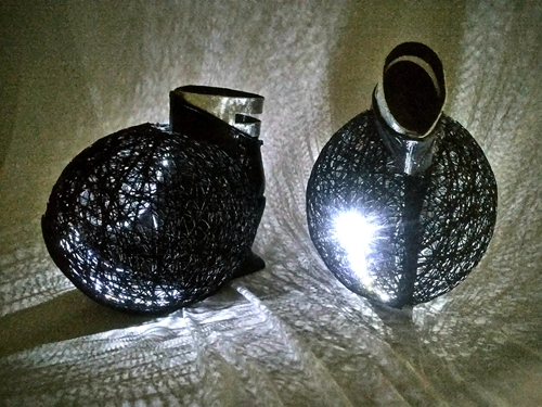 設計說明:有一只被困在籠中的鳥,日夜看著天空,渴望飛翔藍天。但屬于它的終究是那一方竹籠,得不到外面的世界,在小小的籠中它依然也可以綻放異彩,活出自己的天地,即使有束縛,也要散發光芒。