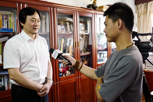 北京服裝學院副院長賈榮林接受記者采訪