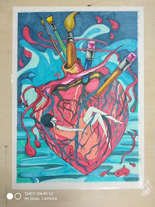 此外,在心理節(jié)各大高校承辦的交流比賽中,兩校區(qū)學(xué)生積極投稿,心理繪畫競(jìng)賽、心書箋創(chuàng)作大賽佳作不斷。其中,美術(shù)學(xué)院李雪燕的《“畫”心》在“心認(rèn)識(shí) 心成長(zhǎng)”心理繪畫競(jìng)賽中,榮獲北京市二等獎(jiǎng),崔楚昕的《糾?結(jié)》獲三等獎(jiǎng)。