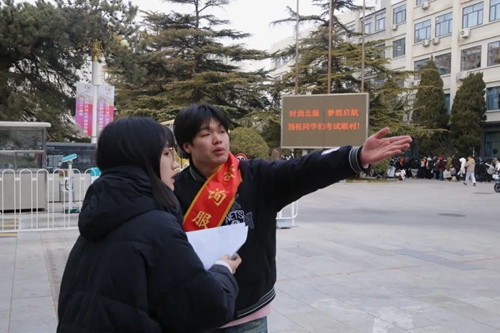 為服務好廣大考生,學校食堂、小賣部、水果店、理發店等在假期全面投入運營,開放民族服飾博物館參觀講解,開放禮堂、報告廳等作為考生中午休息區。后勤部門全力保障水、暖、電、氣和校園環境。志愿者有的穿梭在校園各處,積極熱情地為考生提供問詢、引導和準考證打印等服務;有的化身小記者,用鏡頭記錄下考生們奮斗的身影,傳遞著溫暖與力量。對走錯校區的考生,安全穩定工作部安排專人專車轉運。考試結束后,針對少數考生不慎遺失在校園的身份證、繪畫工具、個人物品等,招生工作處正在積極聯系考生郵寄快遞。