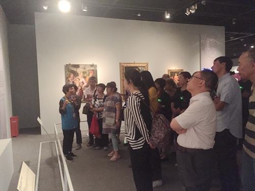 老師們首先來到“天路文華-西藏歷史文化展”展廳,該展覽以藏族及其歷史文化和對于中華民族共同體的重要作用為展覽主線,分別從文明溯源、高原天路、雪域佛韻、和同一家四個方面,展示了西藏的歷史與文化,西藏與周邊地區及內地的文化交往,體現出藏族在多民族統一國家形成的過程中所發揮的歷史作用和為民族文化多樣性做出的貢獻。隨后,在講解員的帶領下,老師們來到了“文藝復興時期意大利藝術、文華和生活展”展廳。文藝復興是意大利歷史上最輝煌的文化運動之一,此次陳列的展品來自烏菲齊美術館、巴杰羅國家博物館、翁布里亞國家美術館等意大利17家博物館和機構,展覽分為傳統與創新、人是宇宙的中心、藝術與信仰三個單元,不僅包括了文藝復興時期意大利的繪畫,還有服裝、日常生活用品和建筑影像,絕大部分展品是第一次與中國觀眾見面。