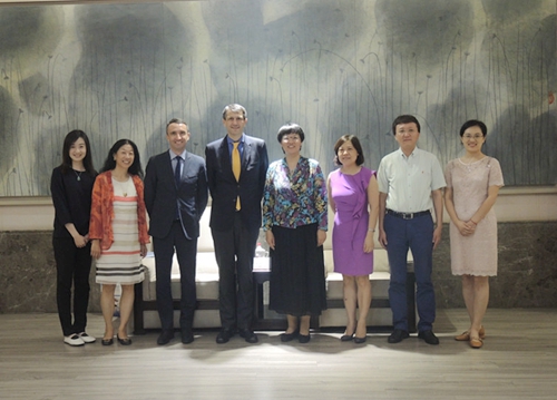 6月28日下午,我校與法國龍陛企業(yè)管理有限公司(英文名:Luxury Business Institute)舉行合作簽約儀式,法國龍陛企業(yè)管理有限公司董事長愛德華?尚普雷諾爾(Edouard CHAMPRENAULT)先生、華北地區(qū)總裁周子牧(Anthony CHAUMUZEAU)先生、資深拓展經(jīng)理周英慧女士一行4人參加了簽約儀式,黨委常委、副院長廖青代表學(xué)校與法國龍陛企業(yè)管理有限公司簽約,商學(xué)院院長趙洪珊、副院長方剛、國際合作與交流處副處長杜曼參加了簽約儀式。此次簽約是繼龍陛企業(yè)管理有限公司主席兼首席執(zhí)行官Daniel MAYRAN先生、Edouard CHAMPRENAULT總裁一行三月份來校交流洽談,增進了解基礎(chǔ)上達成的合作共識。