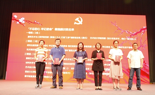 大會在雄壯的國歌聲中拉開帷幕。過去的一年,在校黨委的堅強領導下,北京服裝學院大事、喜事連連,十四副沙畫帶領全體黨員回顧了這波瀾壯闊的一年。黨委副書記艾麗宣讀了2018年北京服裝學院黨內表彰決定及“不忘初心 牢記使命”主題微視頻、“優秀黨建項目”獲獎名單。王超等37名同志獲評“北京服裝學院優秀共產黨員”、馬千里等8名同志獲評“北京服裝學院優秀黨務工作者”、離退休黨委等19個基層黨組織獲評“北京服裝學院先進基層黨組織”。共有11個二級黨組織選送的14個微視頻分獲“不忘初心 牢記使命”主題微視頻評選一二三等獎,十個二級黨組織申報的黨建項目獲得“優秀黨建項目”。 校領導向獲獎組織和個人頒發榮譽證書和獎杯。
