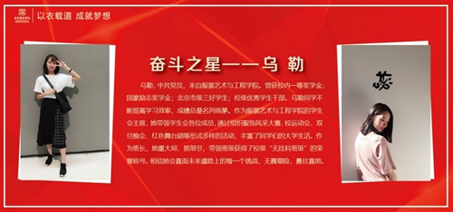 烏勒,中共黨員,來自服裝藝術(shù)與工程學院。曾獲校內(nèi)一等獎學金;國家勵志獎學金;北京市級三好學生;校級優(yōu)秀學生干部。烏勒同學不斷提高學習效率,成績總是名列前茅。作為服裝藝術(shù)與工程學院的學生會主席,她帶領(lǐng)學生會各位成員,通過組織服飾風采大賽、校運動會、雙旦晚會、紅色舞臺劇等形式多樣的活動,豐富了同學們的大學生活。作為班長,她重大局、抓細節(jié),帶領(lǐng)班級獲得了校級“無掛科班級”的榮譽稱號。相信她會直面未來道路上的每一個挑戰(zhàn),無畏艱險,勇往直前。