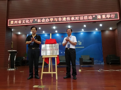 7月12日上午9:30,由貴州省文化廳主辦,貴州省文化廳非遺處、貴州省非遺保護中心、貴州盛華職業學院承辦,傳統工藝貴州工作站、貴州盛華職業學院非遺學院協辦的“社會辦學與非遺傳承對話”活動于貴州盛華職業學院報告廳隆重舉行。作為活動的重要部分,在與會嘉賓見證下,北京服裝學院校外實踐教學基地正式揭牌,從此開啟了兩校合作的新階段。授牌儀式由貴州省文化廳非遺專家委員會秘書長張詩蓮主持。