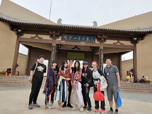 7月2日-6日,北京服裝學(xué)院國際學(xué)院2015級、2016級優(yōu)秀留學(xué)生及港澳臺僑代表本科生一行7人,由國際學(xué)院招生主管周旻老師帶領(lǐng),走出校園,前往中國古代絲綢之路上的重鎮(zhèn)——敦煌,開啟2018年國際學(xué)院學(xué)生暑期看中國藝術(shù)實踐活動,深入了解中國的優(yōu)秀傳統(tǒng)文化和藝術(shù)瑰寶。