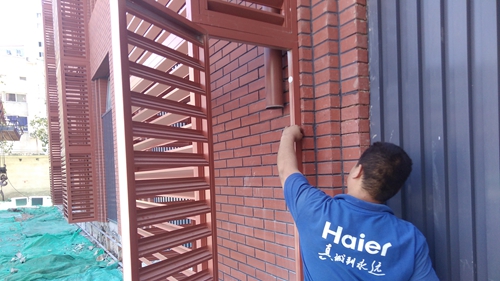 此次安裝的空調(diào)分為1.5匹及2匹功率兩種型號的制冷制熱雙功能海爾品牌空調(diào),安裝地點包括芍藥居校區(qū)教學(xué)樓及男生宿舍樓,采取吊車吊裝的方式進行施工以提高工作效率。
