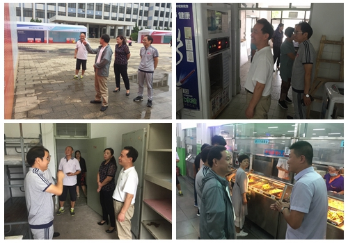 首先,倪副書記一行人走訪了北校區迎新工作的各個場所,如學生宿舍、食堂、教學樓前廣場等地,了解學生宿舍的環境衛生和布置,與食堂工作人員囑托確保食堂食品安全和衛生,并且就報欄、櫥窗以及展板等校園氛圍的布置提出了意見和建議。
