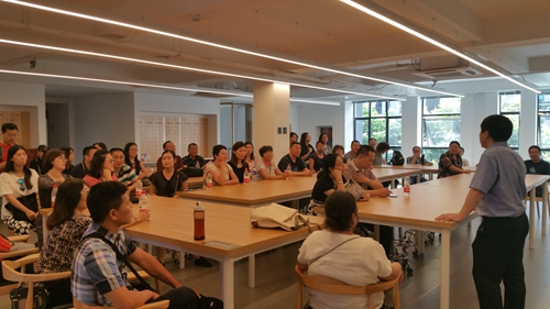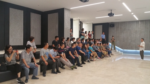 隨后,大家參觀了江蘇昆山北服晨風時尚產業園。在晨風產業園副總經理張霄鵬的帶領下觀看了北服創新產業園宣傳片,并先后參觀了產業園入駐企業、梭織研發實驗室、設計實踐中心等。最后產業園副總經理張霄鵬結合園區的概況、發展現狀以及未來發展前景等做了專題介紹,探討了產業園在創新、創業以及人才培養方面的作用。