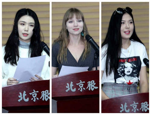 來自二年級(jí)的中國香港學(xué)生田暢代表老生發(fā)言,她與新同學(xué)們分享了自己在北服學(xué)習(xí)生活的感受,講了自己大一在國際學(xué)院學(xué)習(xí)期間去海寧昆山“兩課”實(shí)踐暨藝術(shù)專業(yè)認(rèn)識(shí)實(shí)習(xí)、聽國家大劇院音樂會(huì)、北服國際日等各類社會(huì)實(shí)踐和課余活動(dòng),豐富了她們的專業(yè)知識(shí),希望新同學(xué)在課余時(shí)間也能積極參加各類活動(dòng),珍惜學(xué)習(xí)機(jī)會(huì)。來自俄羅斯的本科生代表SILANTYEVA NELLI發(fā)言,她說自己從小學(xué)過很多藝術(shù)課,受媽媽的影響又很喜歡制作衣服,從網(wǎng)上了解到北服曾為2008年奧運(yùn)會(huì)設(shè)計(jì)服裝,便毅然選擇北服來讀大學(xué);來自哈薩克斯坦的OMARZHANOVA ASSIYA,作為碩士研究生代表,談了自己對(duì)北服的深厚情感,她是在北服學(xué)習(xí)的漢語及服裝與服飾設(shè)計(jì)專業(yè)本科,如今以優(yōu)異成績畢業(yè),繼續(xù)在北服攻讀碩士研究生,正是對(duì)藝術(shù)的熱愛,讓她選擇在北服繼續(xù)深造。