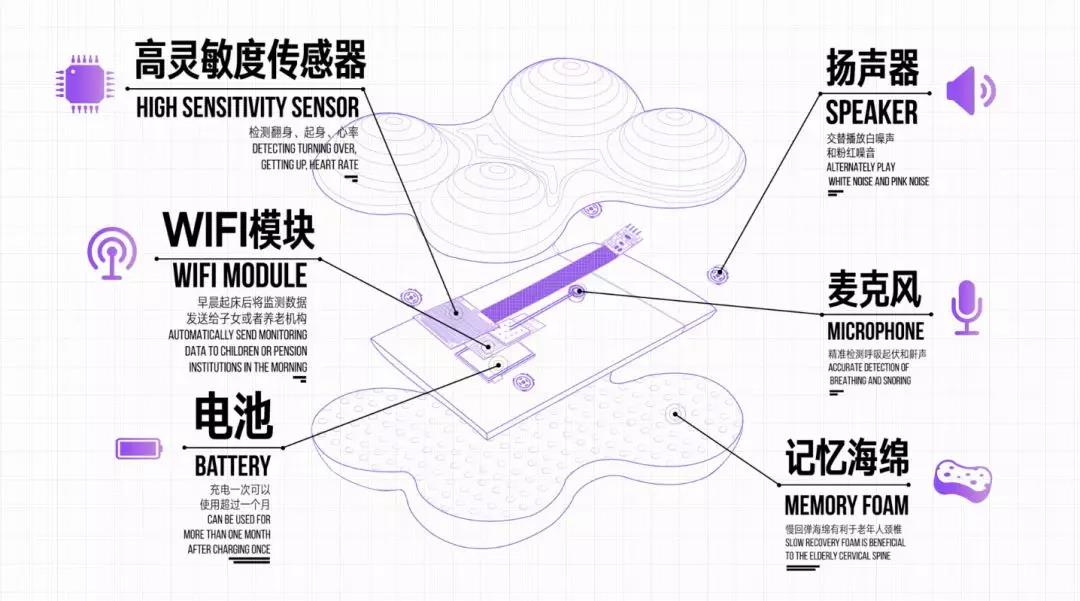 本次全場(chǎng)大獎(jiǎng)得主是來自高級(jí)睡眠輔助Group–1A的選手們,他們本次課題是關(guān)于銀發(fā)就寢輔助,針對(duì)于目前老年人普遍的失眠現(xiàn)象,他們提出了以簡(jiǎn)易操作的手機(jī)app來控制智能枕頭播放助眠噪音,從而幫助老年人進(jìn)入睡眠,他們憑此一舉奪魁。