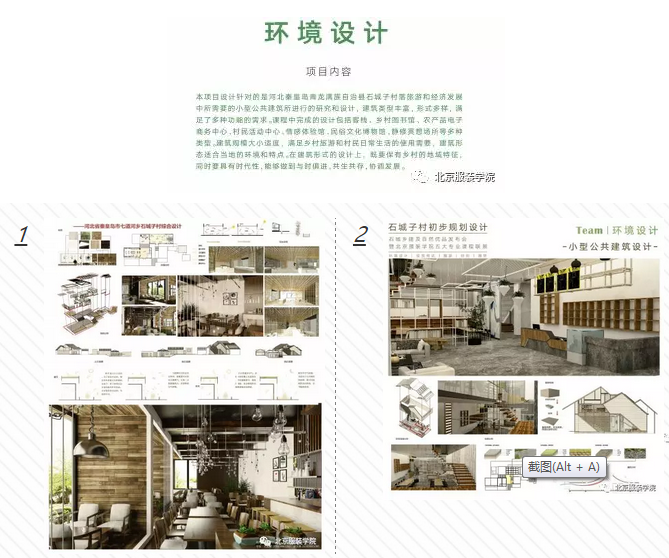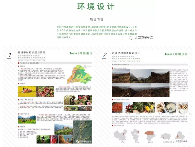 值得一提的是,2016年8月至2017年11月期間,環境設計系與視覺傳達設計系聯合攝影系、紡織品設計系、雕塑系,共同圍繞“設計改變鄉村”議題,以多課堂協同實踐教學方式探索高校作為一種社會力量,通過設計和創意幫助河北省秦皇島青龍縣石城子村精準扶貧。在金巖、韓誠、郝雪莉、李瑞君、李政、劉達、陳望、石娟娟,于清淵,王凱翔、蘇溯、劉玉庭等老師的帶領下,七個專業200多位同學參與到設計工作中,環境設計系的同學為村子進行整體規劃、景觀和建筑設計;視覺傳達設計系的同學在品牌設計課程上為石城子村農產品策劃設計并注冊了“石也香”農產品品牌;攝影系同學為該村設計形象推廣方案,拍攝村民人物肖像;紡織品設計系同學設計開發當地滿族文化家居紡織品,推動文化旅游發展;雕塑系同學設計鄉村環境中的公共藝術作品。石城子村項目還舉行了教學成果匯報展和設計改變鄉村扶貧探索研討會,得到農業部、人民日報社的關注和好評。目前,該項目已轉化落地,投入實際實施階段,探索了用設計助力鄉村建設的新模式。民貿會政策研究室專門組團參觀了社會實踐成果展,在參觀中,民貿會重點了解了實踐地——河北省秦皇島市青龍滿族自治縣七道河鄉石城子村的發展歷史、特色產品、民族文化和發展需求等。其后,民貿會與一鄉一品產業發展促進中心和中貿國資商貿流通事業部將該村的特色產品(主要是板栗和核桃)列入民貿會一鄉一品產業促進計劃產品名錄,協助拓展銷售渠道,已成功促成湖南趴淘網絡科技有限公司、北京新晟伊鮮網絡技術有限公司與青龍滿族自治縣又飄香核桃專業合作社達成合作,將石城子的板栗和核桃等特色產品列入銷售名錄,并正式上線。同時,將組織專業團隊前往拍攝產品的生長環境、采摘場景、加工制作等環節,全方位宣傳該村的村容村貌,讓更多的消費者了解該村的產品,讓更多人群了解石城子村。