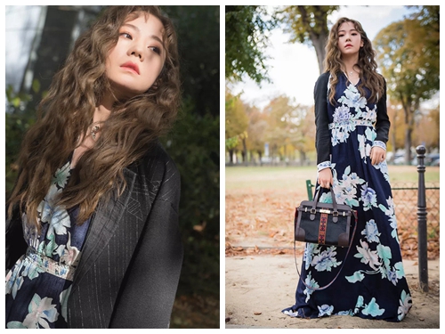 女子團(tuán)體火箭少女101成員紫寧于巴黎時(shí)裝秀場(chǎng)外非遺單品穿搭