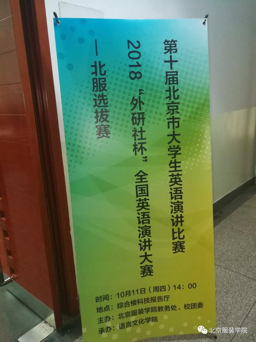 10月11日下午,由語言文化學院承辦的第十屆北京市大學生英語演講比賽、2018“外研社杯”全國英語演講大賽、第二十四屆中國日報“21世紀﹒可口可樂杯”全國英語演講比賽——北京服裝學院選拔賽在5號樓科技報告廳成功舉行。